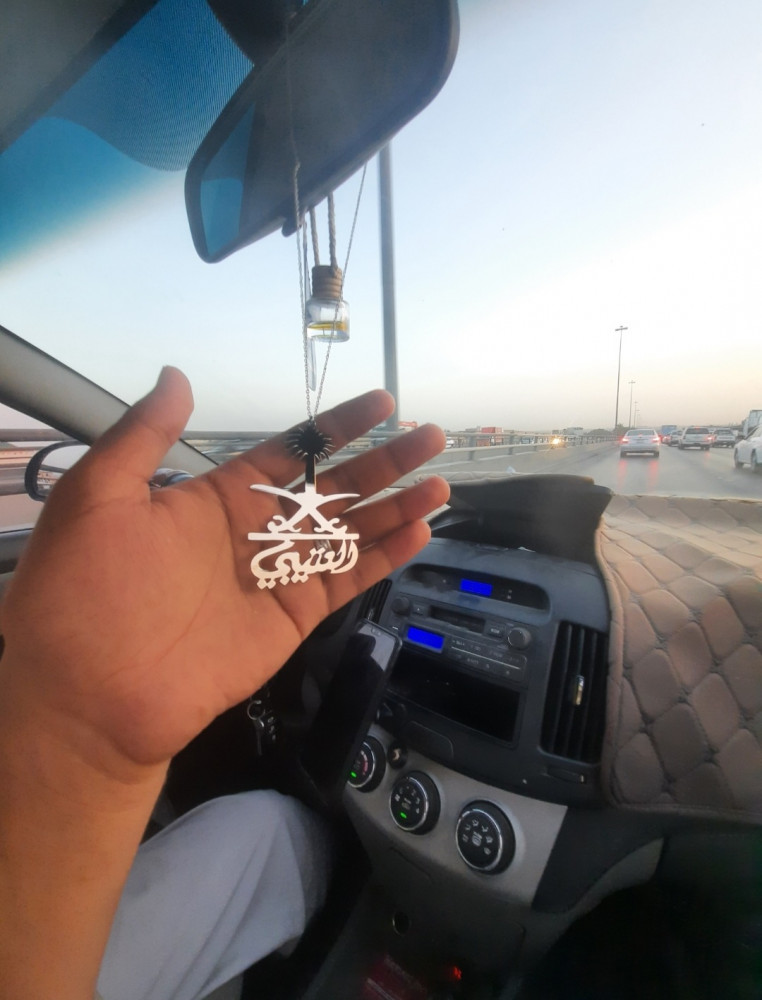 ١٠٠ ر.ستعليقة سياره مع سيفين ونخله كتابة الاسم حسب الطلب