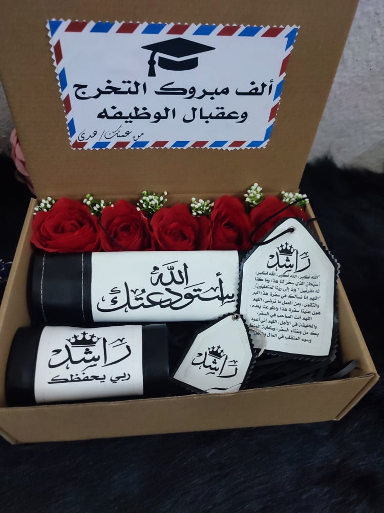 - بكس مرتب مع ورد و عباره على البكس حسب الطلب